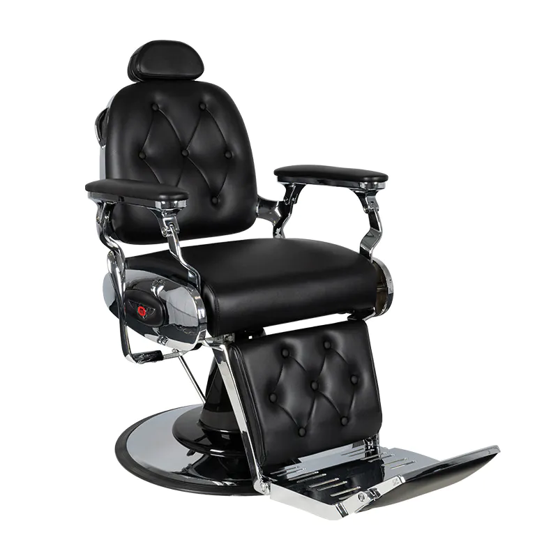 Brijačka stolica PIETRO. Ovaj moderni, izvrsno izrađeni komad namještaja odlikuje se detaljima inspiriranim motociklima. Pruža klijentima salona maksimalnu udobnost tijekom tretmana. Osim podešavanja gore-dolje, stolica ima naslon koji se može nagnuti i podesivi oslonac za noge. Unatoč maloj veličini, klijent se može smjestiti u udoban, poluležeći položaj. Udobno sjedalo prekriveno je visokokvalitetnom eko kožom. Široka, kromirana baza osigurava stabilnost tijekom korištenja. Dodatna prednost je lako podesivi naslon za glavu. Namještaj je dostupan u crnoj boji.