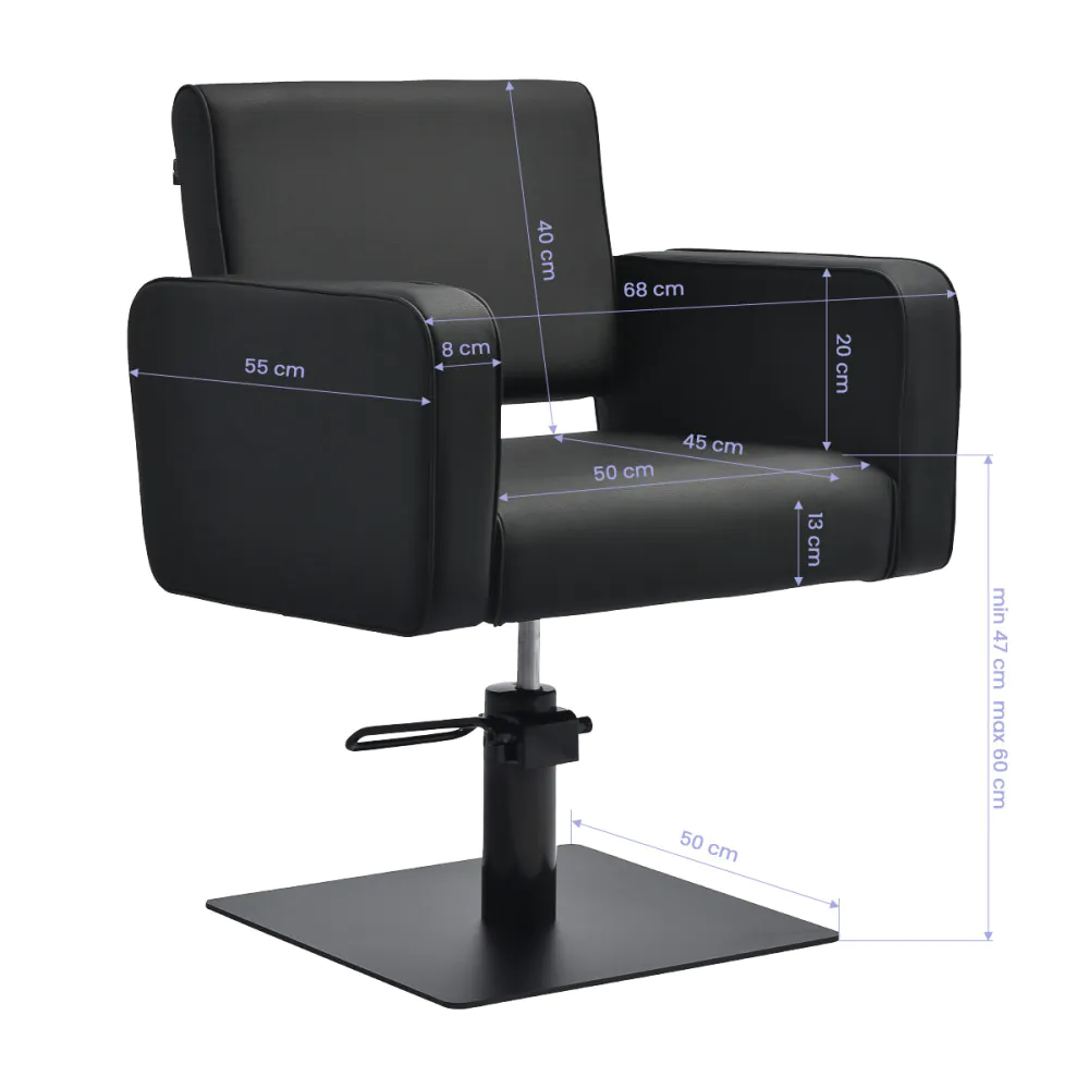 Minimalistička frizerska stolica s hidrauličkim podizačem Frizerska stolica Gabbiano Bilbao kombinira jednostavan dizajn s praktičnim rješenjima. Opremljena učinkovitim hidrauličkim podizačem, omogućuje glatko podešavanje visine , olakšavajući rad stilista. Udobno sjedalo osigurava udobnost čak i tijekom dugih tretmana, dok minimalistički oblik salonu daje moderan karakter .