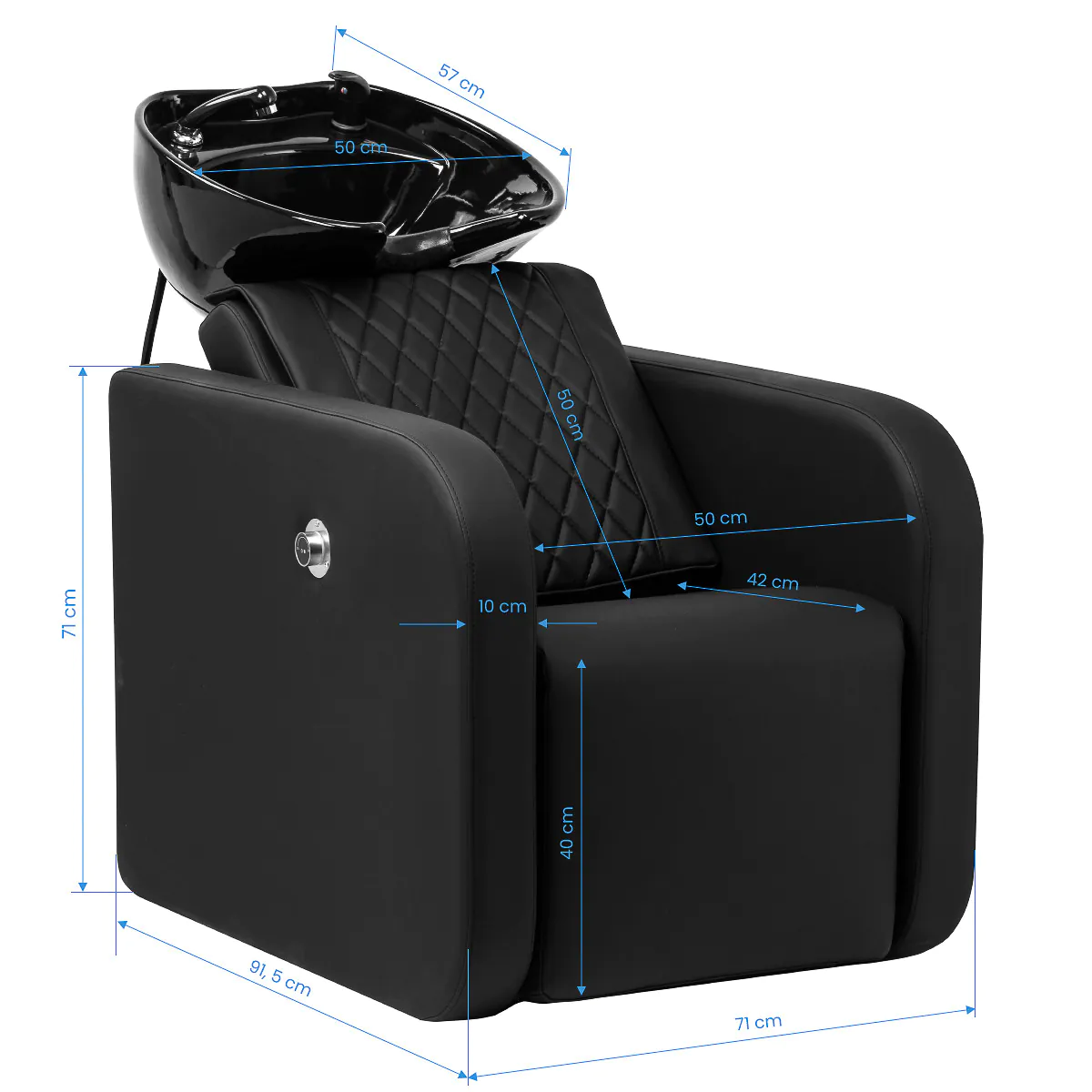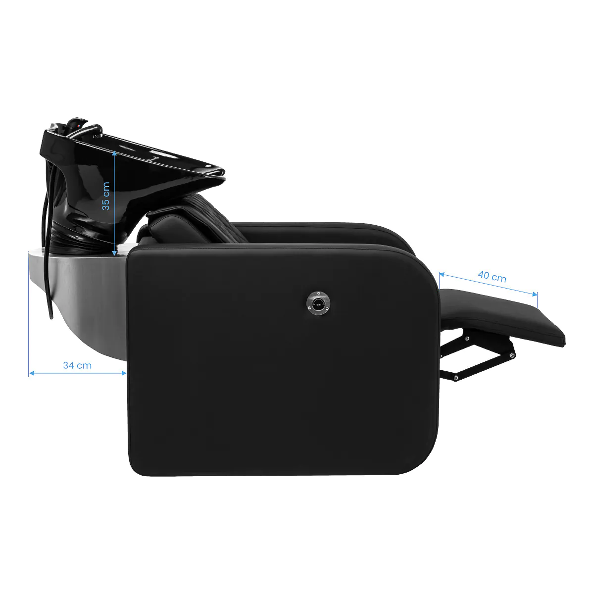 Praonik za kosu sa električnim podizanjem za noge i sa masažom leđa kombinira udobnost, estetiku i funkcionalnost. Produživi, električno podesivi oslonac za noge omogućuje jednostavno pozicioniranje prema potrebama klijenta, povećavajući udobnost tijekom pranja kose. Intuitivno rukovanje i ergonomski dizajn čine rad s uređajem ne samo ugodnim već i izuzetno učinkovitim. Opuštajuća masaža leđa Ugrađeni sustav za masažu leđa s pokretnim valjcima istinski nadopunjuje trenutak opuštanja tijekom pranja kose. Mehanizam pruža preciznu i umirujuću masažu duž kralježnice. Četiri valjka nježno opuštaju napete mišiće, potičući opuštanje i poboljšavajući dobrobit. Savršen je dodatak masaži vlasišta – zajedno stvaraju sveobuhvatan ritual njege koji će klijenti dugo pamtiti.